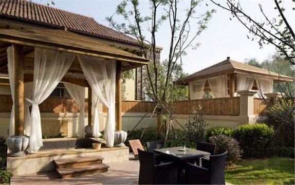 以地中海托斯卡纳、北欧原生木质建筑风格为主的温泉精品酒店;客房以户式结构进行打造,每户用2米高的围墙和大型乔木进行分割,让你拥有私密空间。庭院景观以四季常青植被为主,每个庭院配有室外专属汤池。