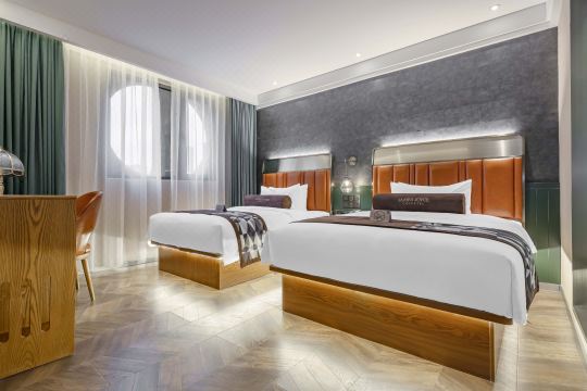 大厅内的共享社交咖啡吧,和志同道合的啡友们一起DIY出您想要的咖啡口味,开放式书架,在浩瀚的书海里选出一本您钟爱的书籍,开始美妙的阅读时光,多种艺术摆件等。这一切皆为客人创造出一种英伦复古风并充满着醇香咖啡味道的人文、社交、格调的氛围感受,带给客人的将是一段“旅途中的啡凡存在”。