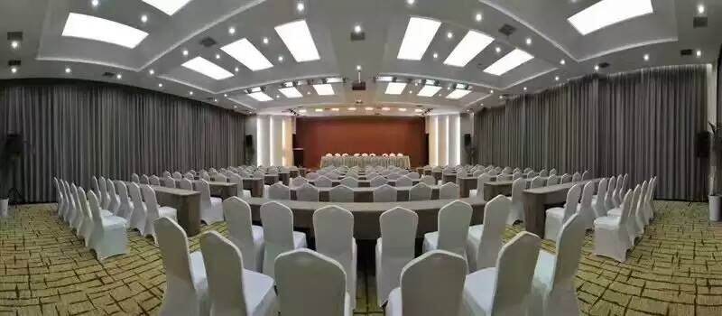 多功能厅,位于酒店13层,视野开阔,是一间桌椅可变,能容纳200~350人的会议室。360平米,顶高3.8米,可同时容纳课桌式会议250人、剧院式会议340人、岛屿式会议200人,还可承接婚宴以及大型宴请。